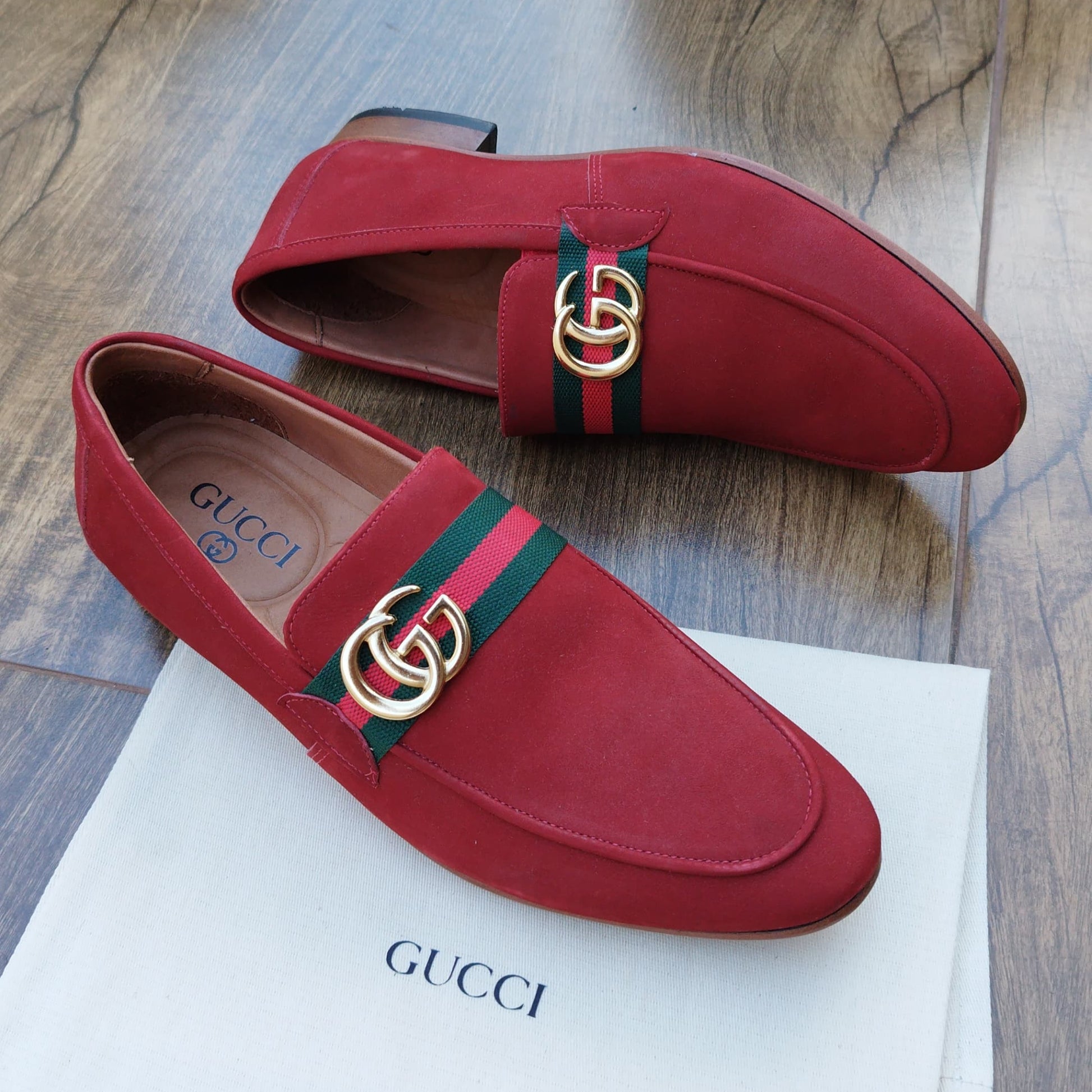 Mocassim Gucci em Camurça Vermelho